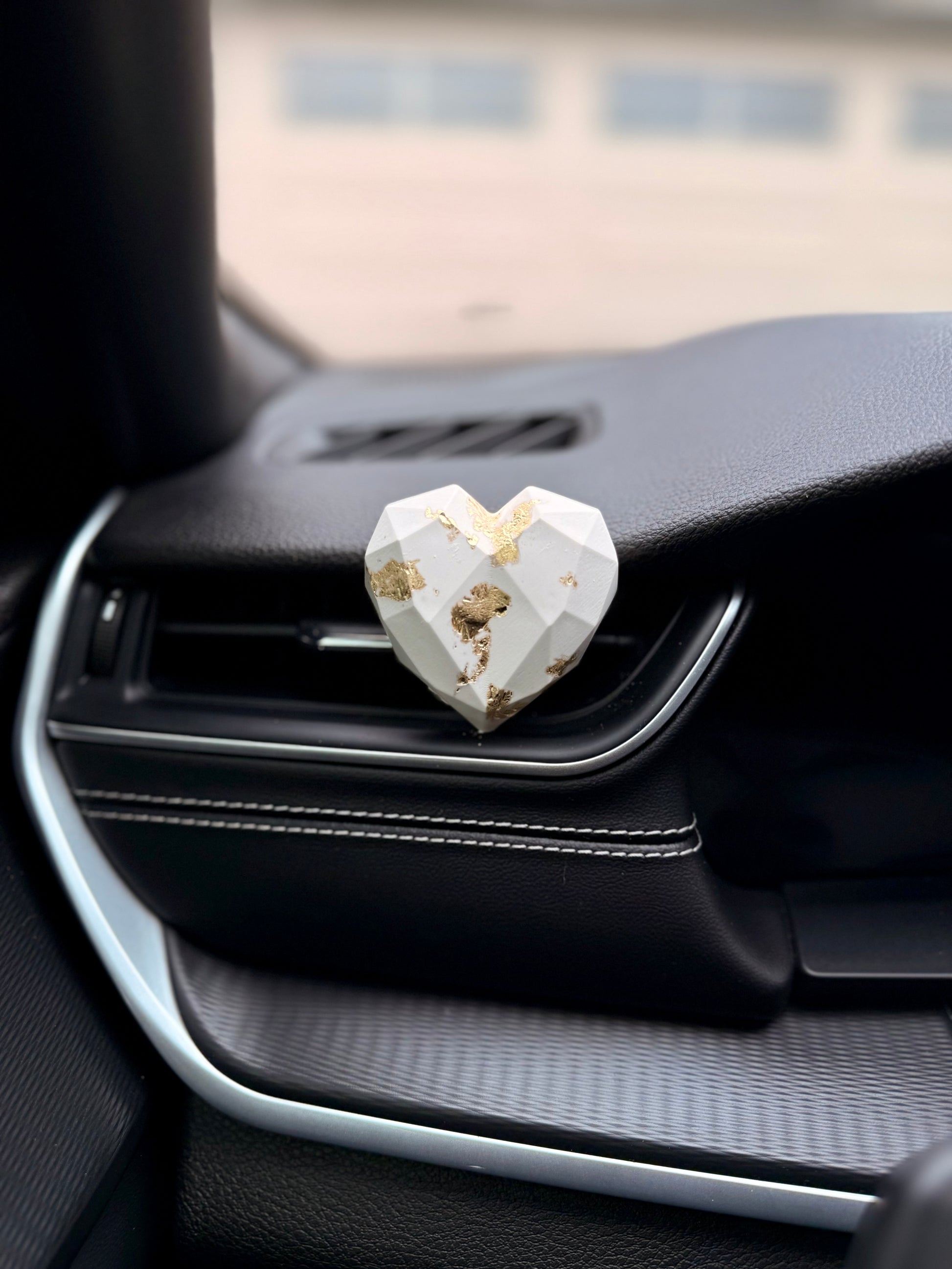 Add a touch of modern design and subtle fragrance to your drive with my handcrafted jesmonite heart car diffuser.